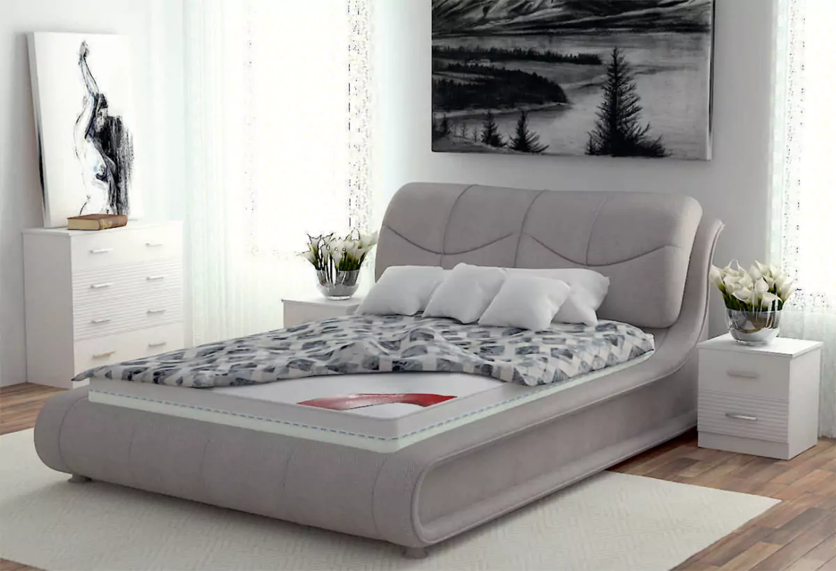 Сицилия - идеальное решение для интерьеров в стиле "Футуризм" и "Модерн". Плавные линии изголовья и основания создают гармоничный внешний вид кровати, в то же время оригинальный и изысканный. Отличительной особенностью кровати является изогнутое изголовье с закрепленными накладными подушками, что позволяет наслаждаться чтением книг, журналов, а также работать с планшетом и ноутбуком в комфортном положении.